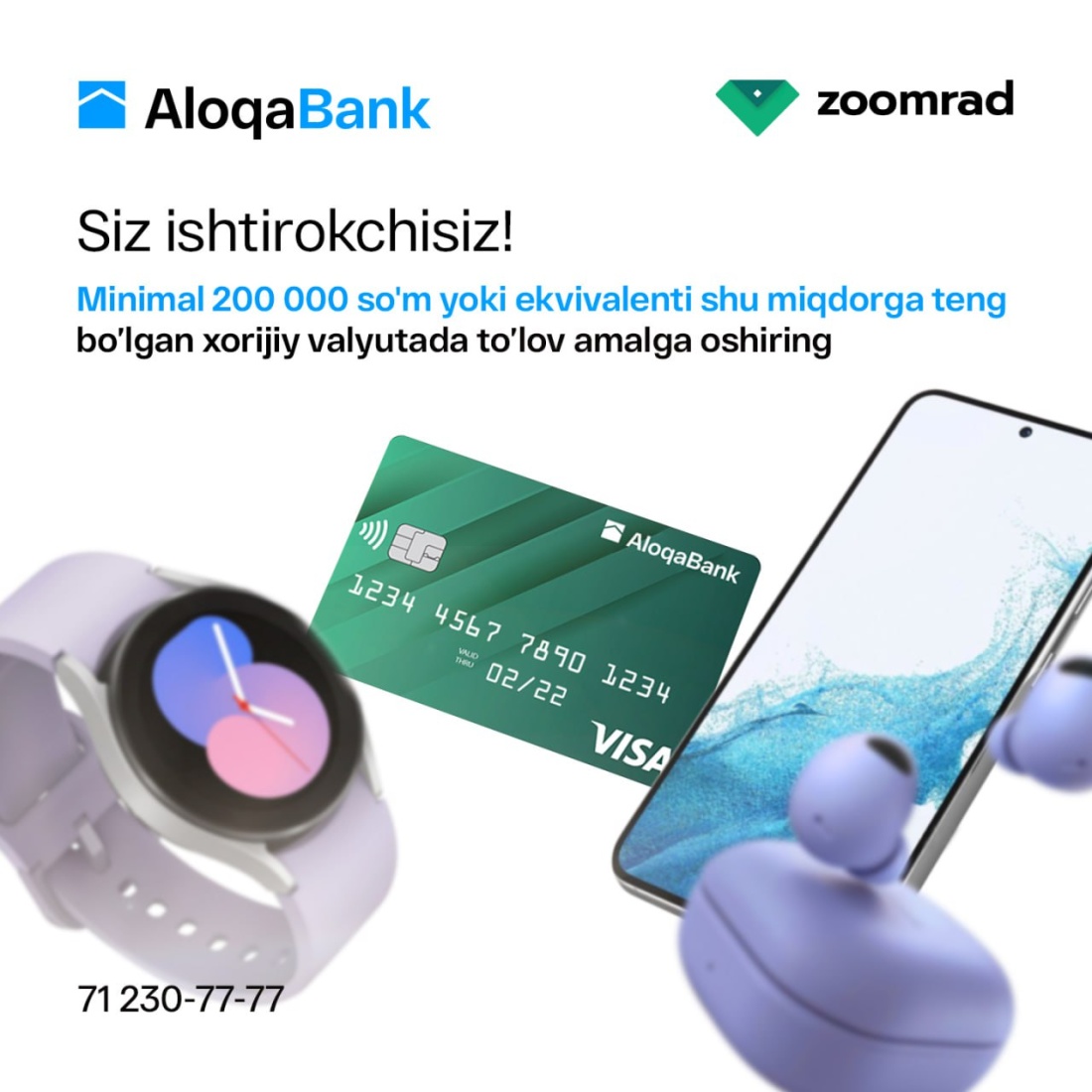 Eslatma: Agar siz allaqachon AloqaBank VISA kartasiga ega bo’lsangiz, yangi buyurtma qilishingiz shart emas !